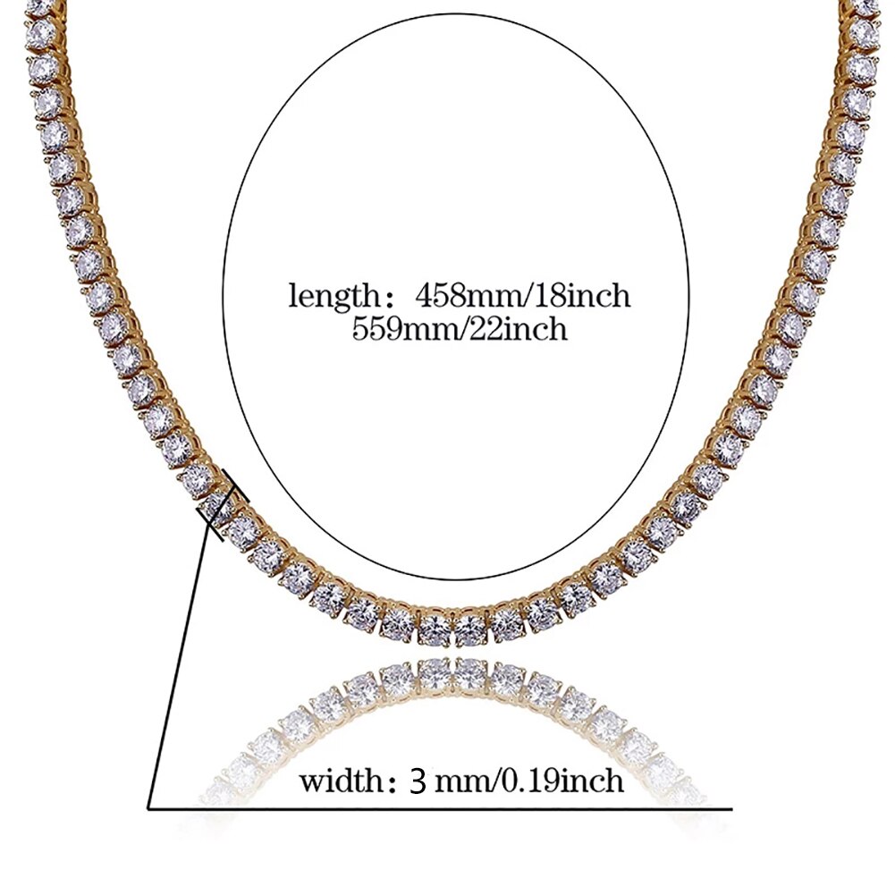 Tennis Chain Size: 18inch,20inch,22inch,24inch,30inch