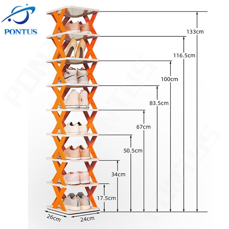 This multi-layer organizer is easy to assemble and perfect for any space. Whether it's your home, dorm room, or elsewhere, our shoe rack keeps your footwear organized and easily accessible. Crafted with durable PP and ABS materials, it offers sturdy and reliable storage for your shoes. The adjustable design allows for customization, making it ideal for closets, entryways, and hallways. Our shoe rack is not only functional but also easy to care for. Made from non-toxic plastic, it's waterproof and can be washed with water. The built-in door holes ensure proper ventilation to prevent odors.